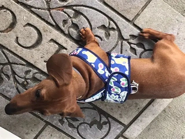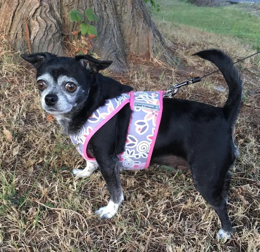 Easy step-in style for teacup and small dogs from 4 LBS - 25 LBS. CUSTOMER FAVORITE RETURNS! Cotton prints lined with wicking mesh and constructed with a soft inner filler. Easy to apply, great for dexterity issues - simple, clean, modern.