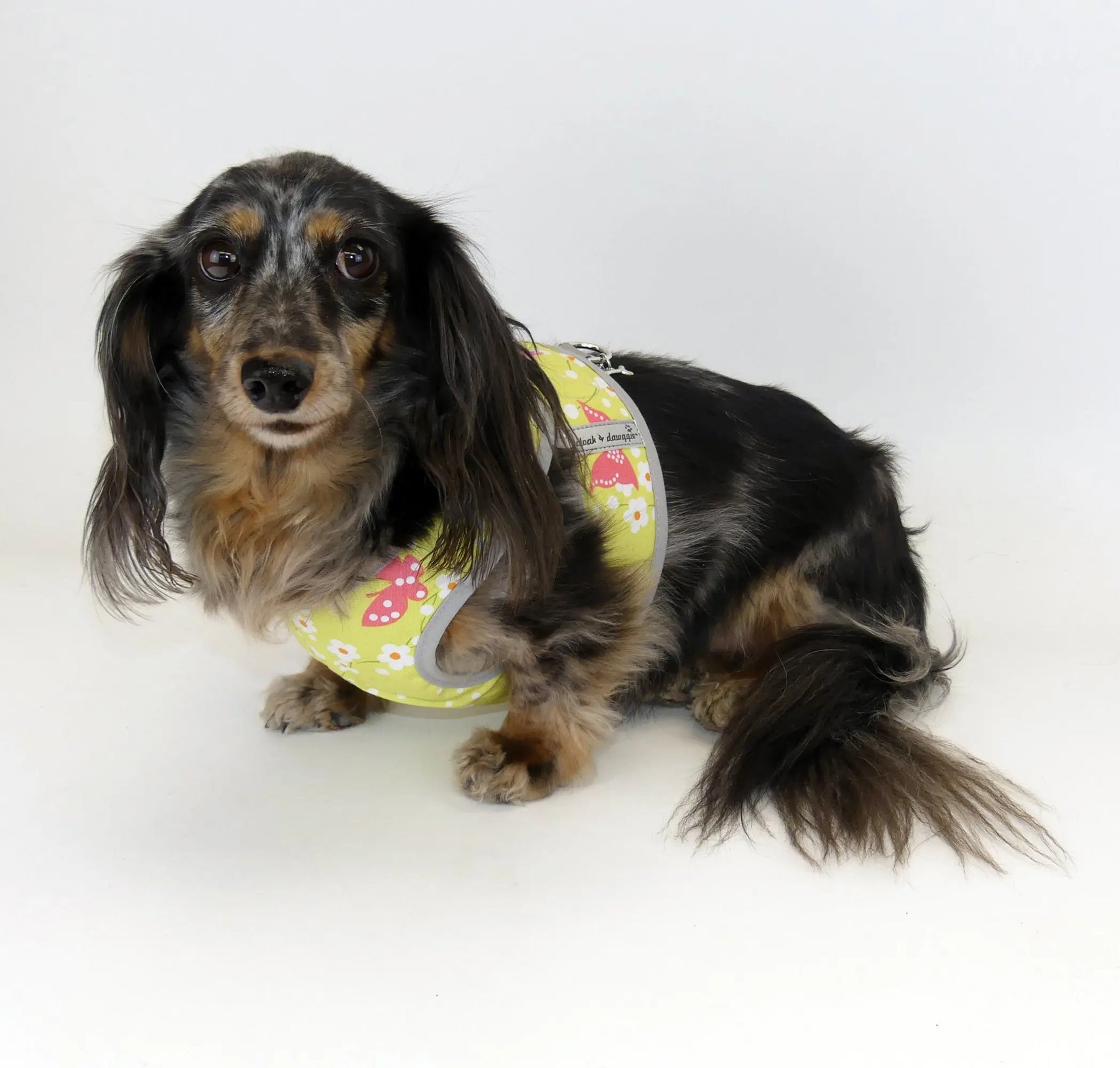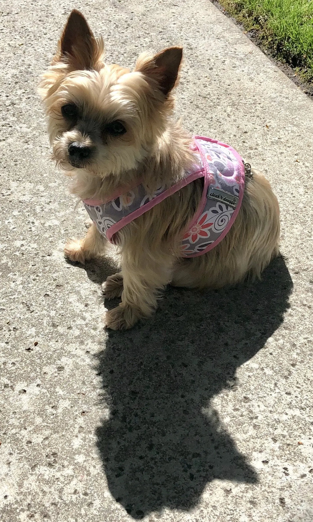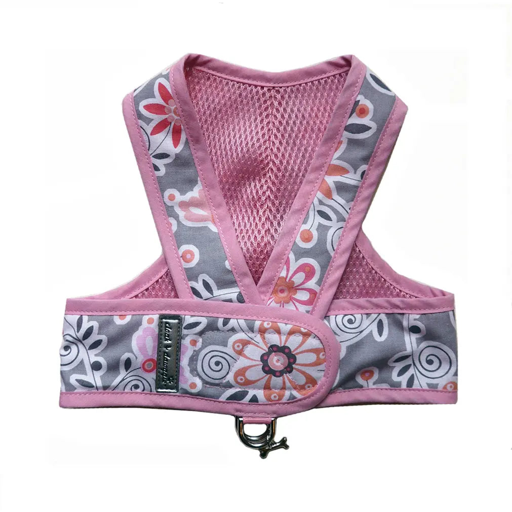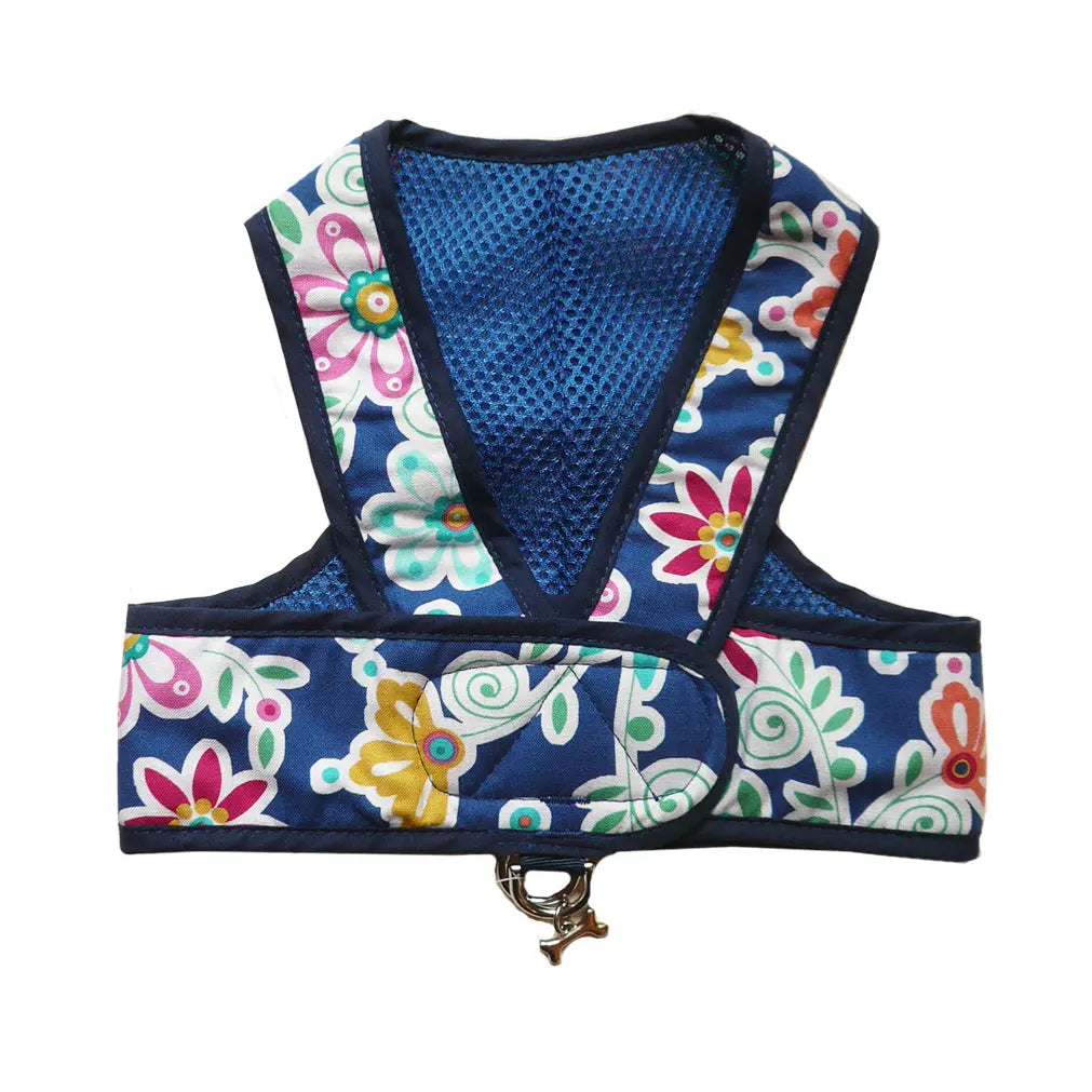 Cotton prints backed with soft mesh. Easy step-in style for teacup and small dogs. Double top D-Ring for lead attachment, Top Velcro closing - Back by customer demand the original Step n Go styling. Fully washable.