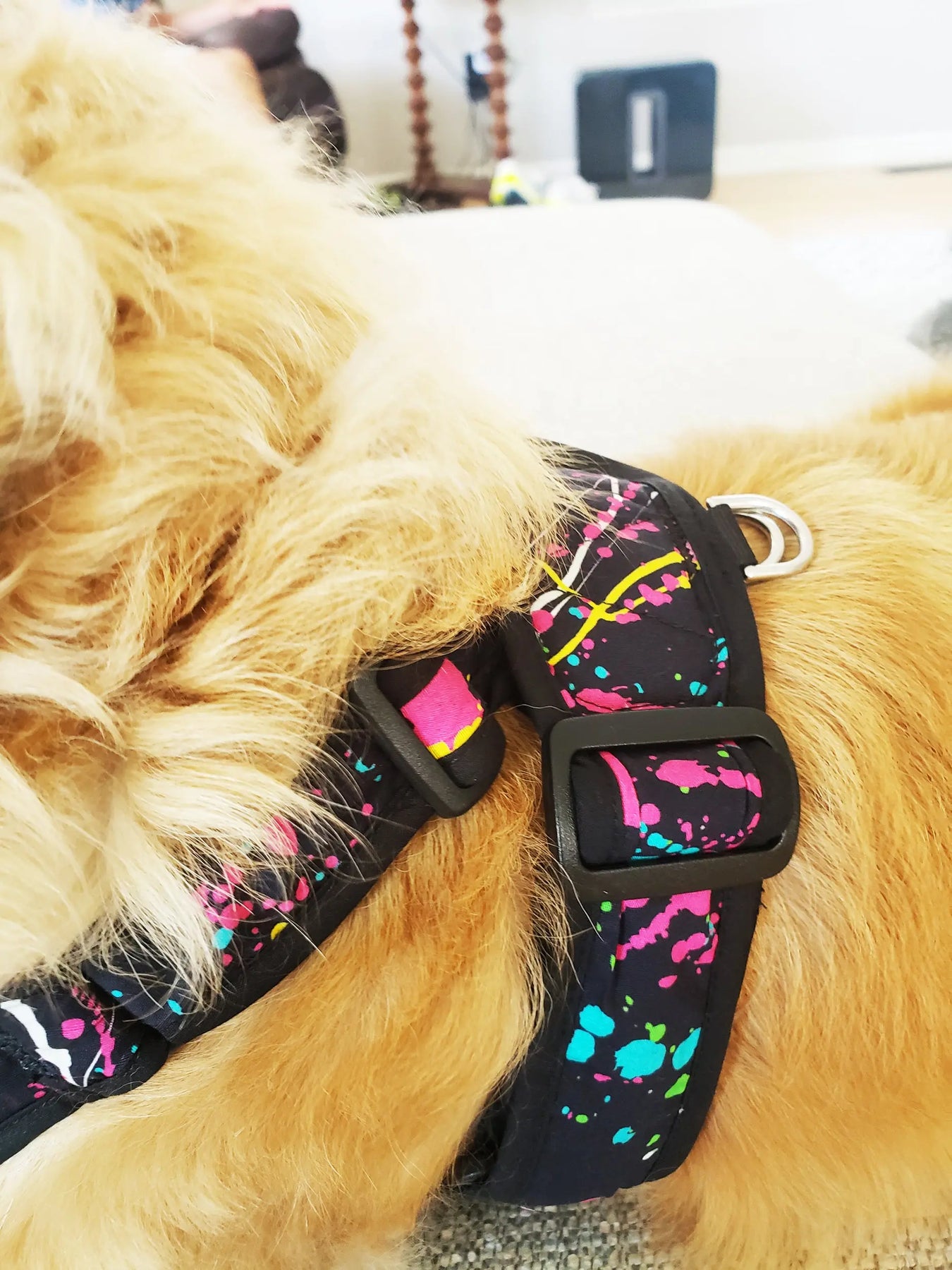 Easy On and Easy Off. Adjust the fit the first time your dog wears the harness with the slip-lock buckles on each side, and shoulders which allows you to exactly size this harness to fit your pet's needs! Adjustability is a great feature when wearing the harness over sweaters and jackets in the fall and winter, you can simply slide the buckles as needed.