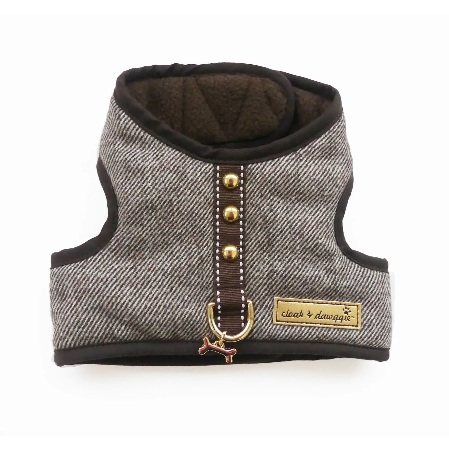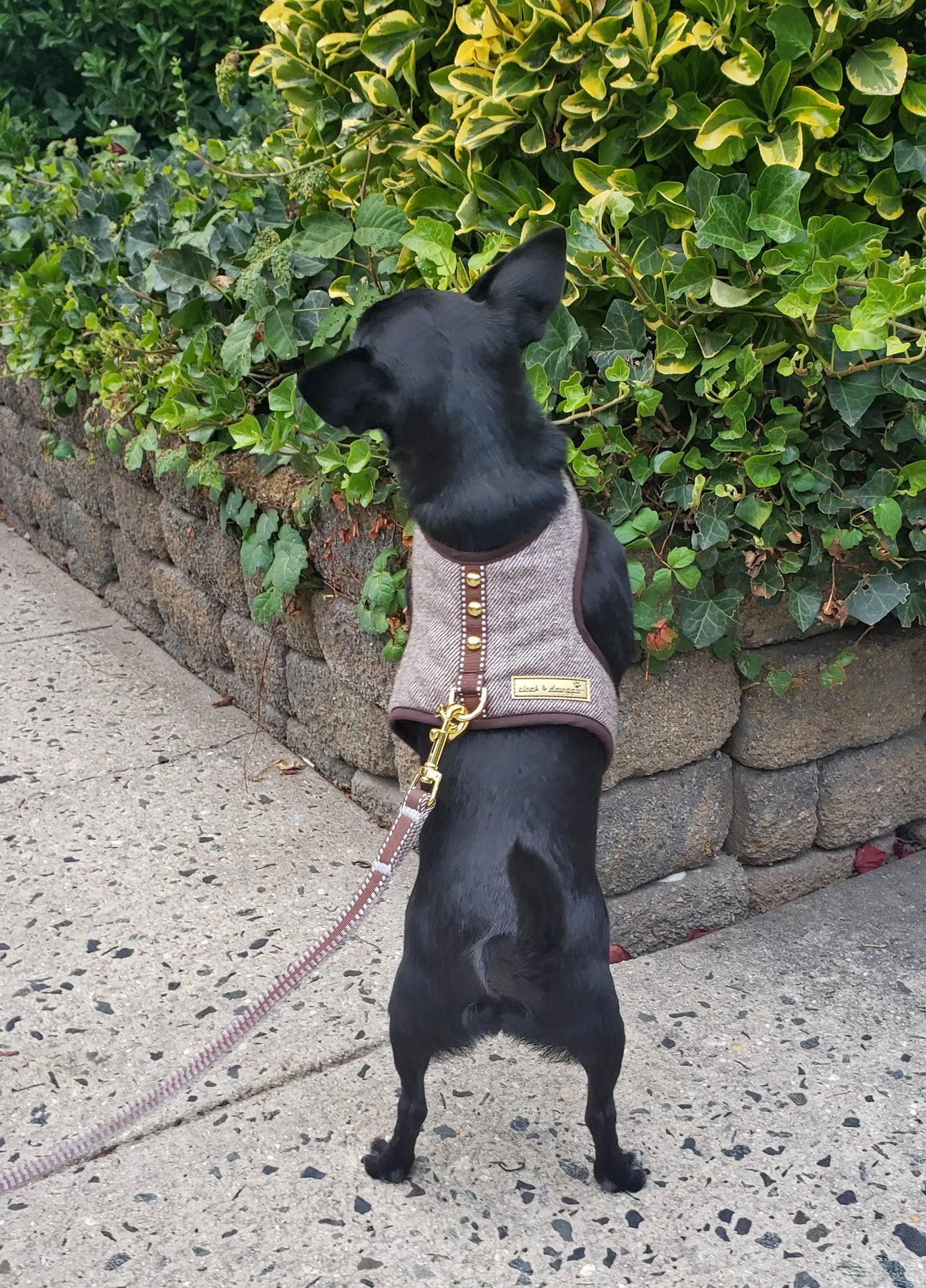 The Tiny Dog Vest. Luxury Choco Twill Flannel Dog Harness