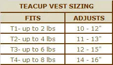 TEACUP VEST SIZING: