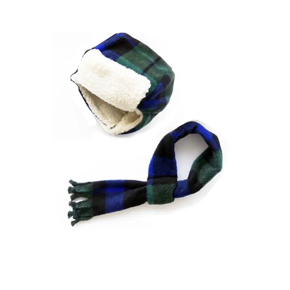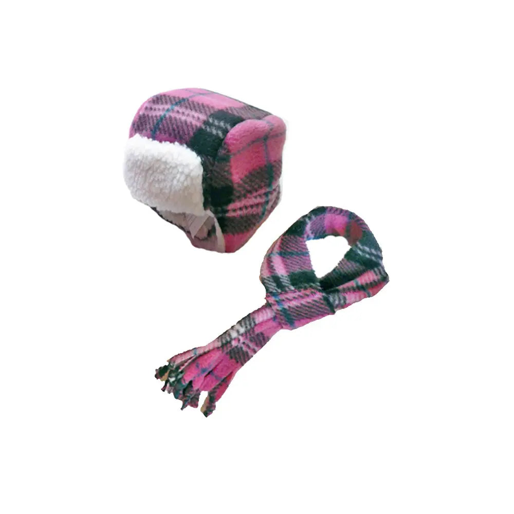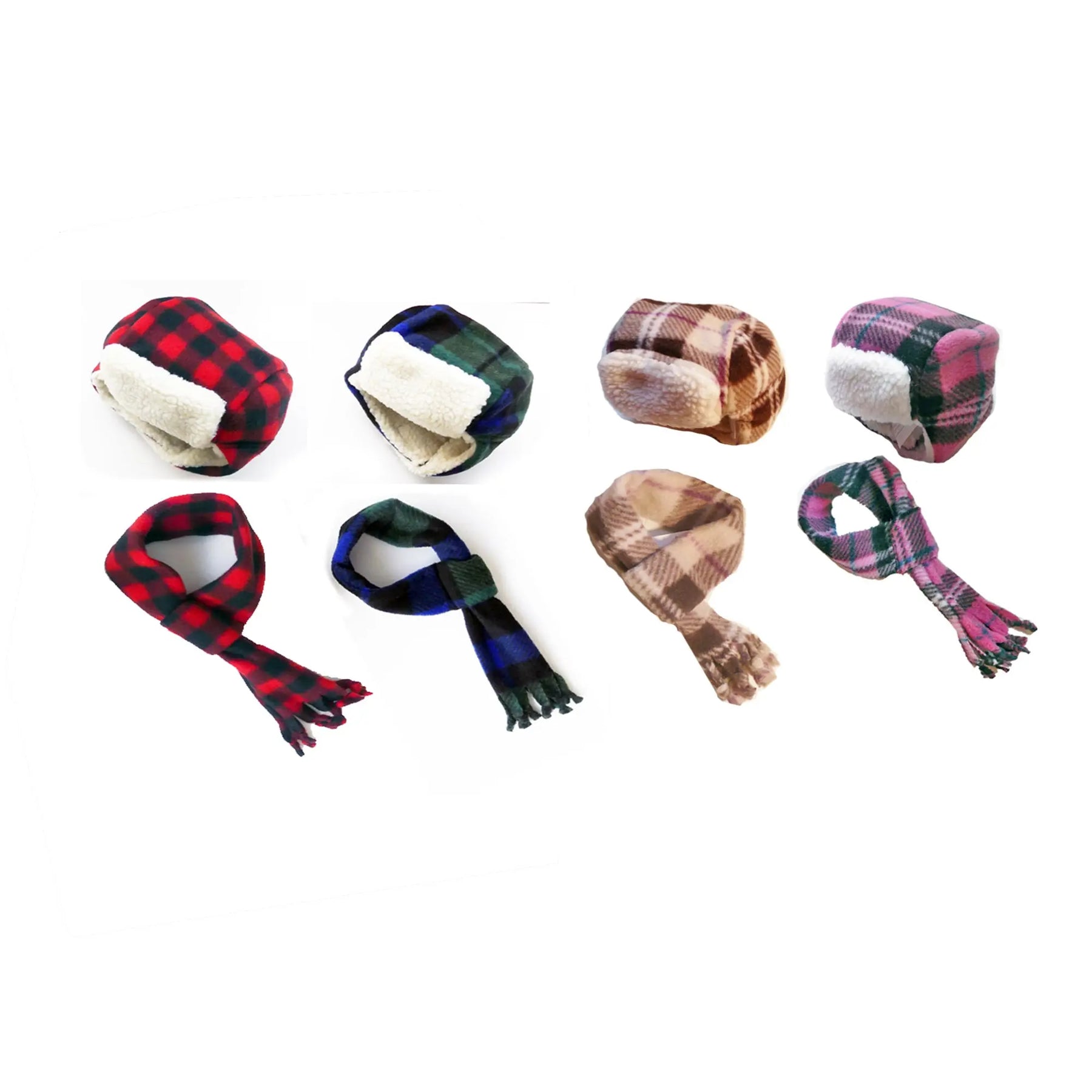 Cozy polyester patterned fleece lined dog hat with sherpa styled in adorable hat n scarf sets for all-size dogs!