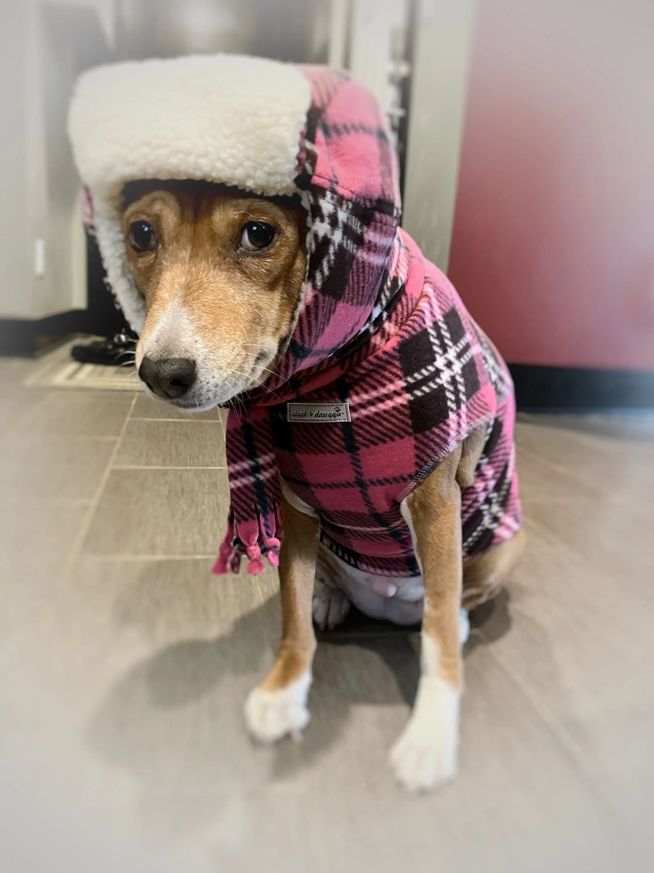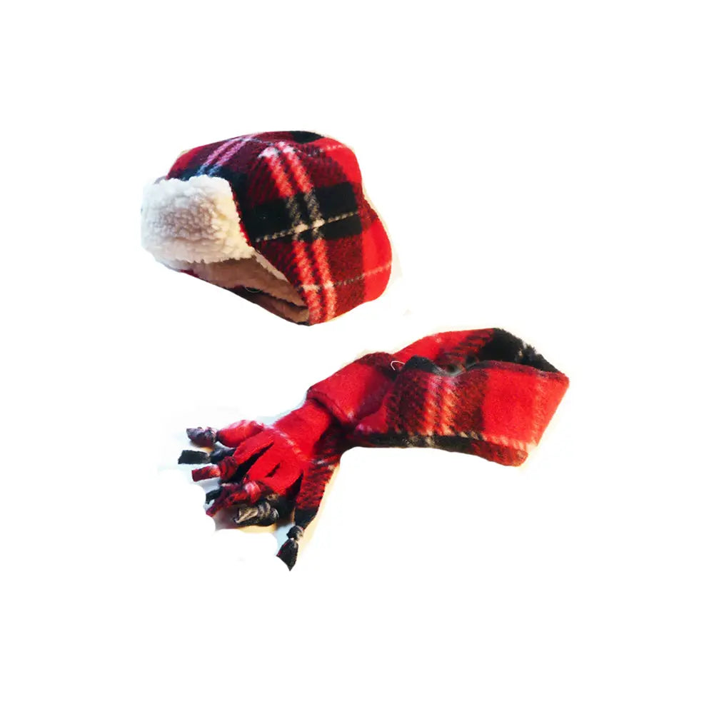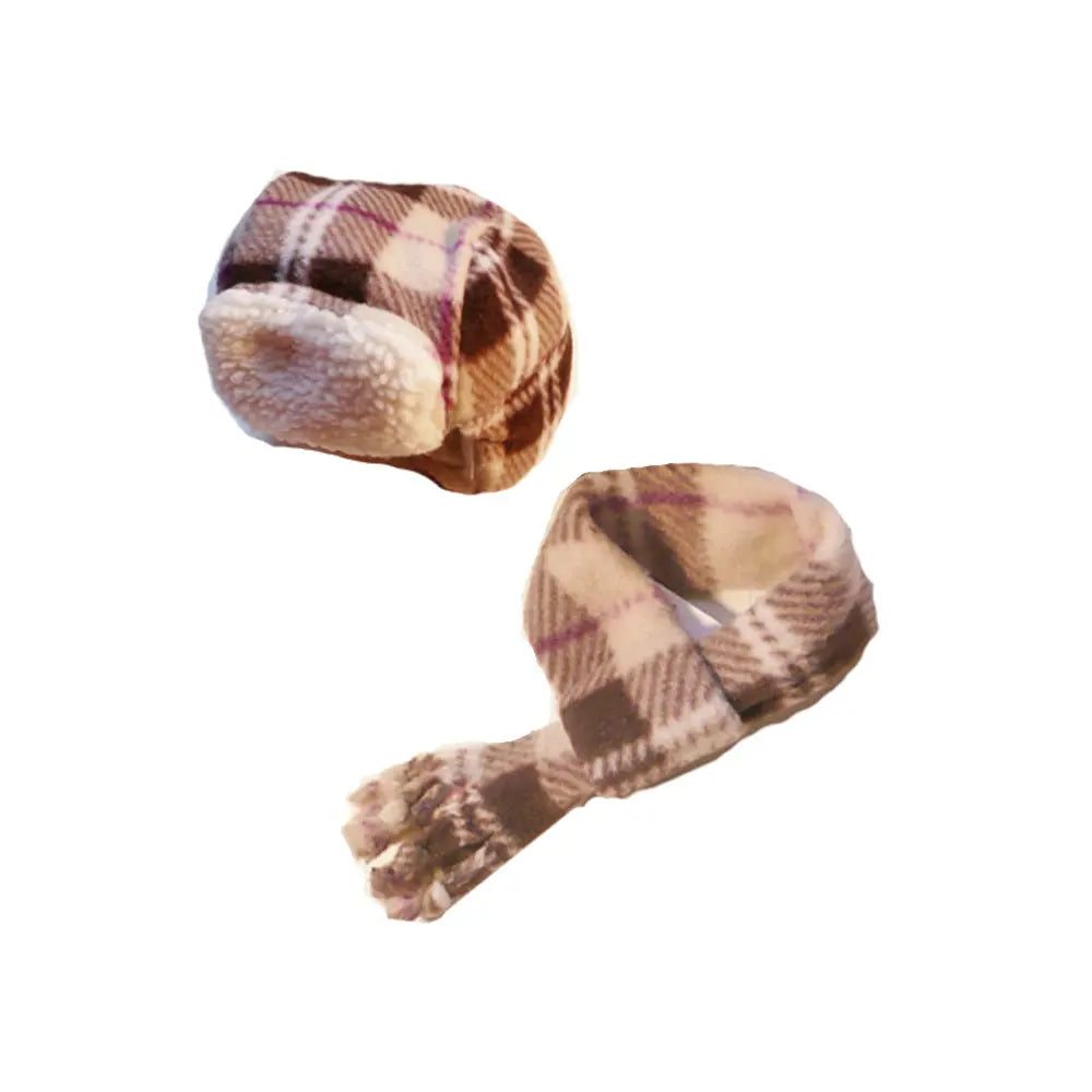 Cozy polyester patterned fleece lined dog hat with sherpa styled in adorable hat n scarf sets for all-size dogs!
