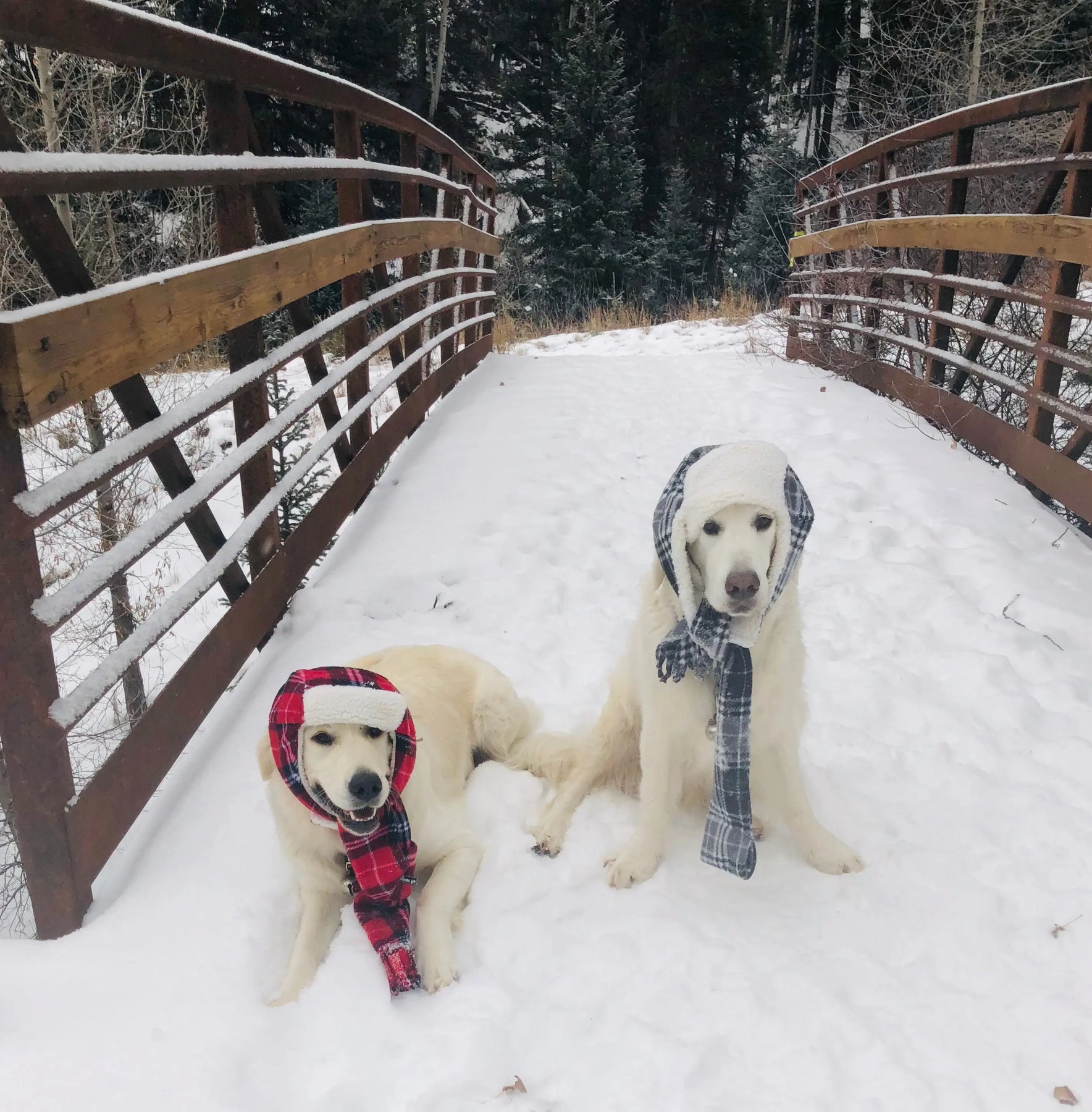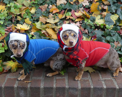Peanut & Ginger pictured here are 12 LB dachshunds - they have XS sweaters and XXS Hats.