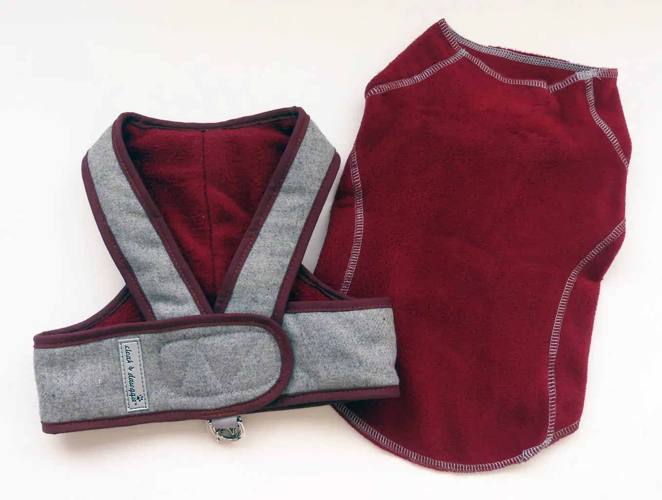 City or mountains - here we come! A Luxury Flannel Dog Harness for Small Dogs. A matching fleece sweater completes the look for a designer dog harness and sweater ensemble.