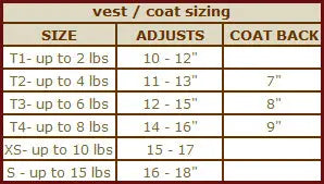 So for example – the T4 in our other coats would measure to an XXS – but if you have a teacup 7 lb dog that dog might have a shorter CB length than the 10” that we make on our XXS and this would be a good coat for that dog.  Also – you can use this coat as your harness when walking as it has the Dring clip on the back.  It fits like the teacup vest harnesses.
