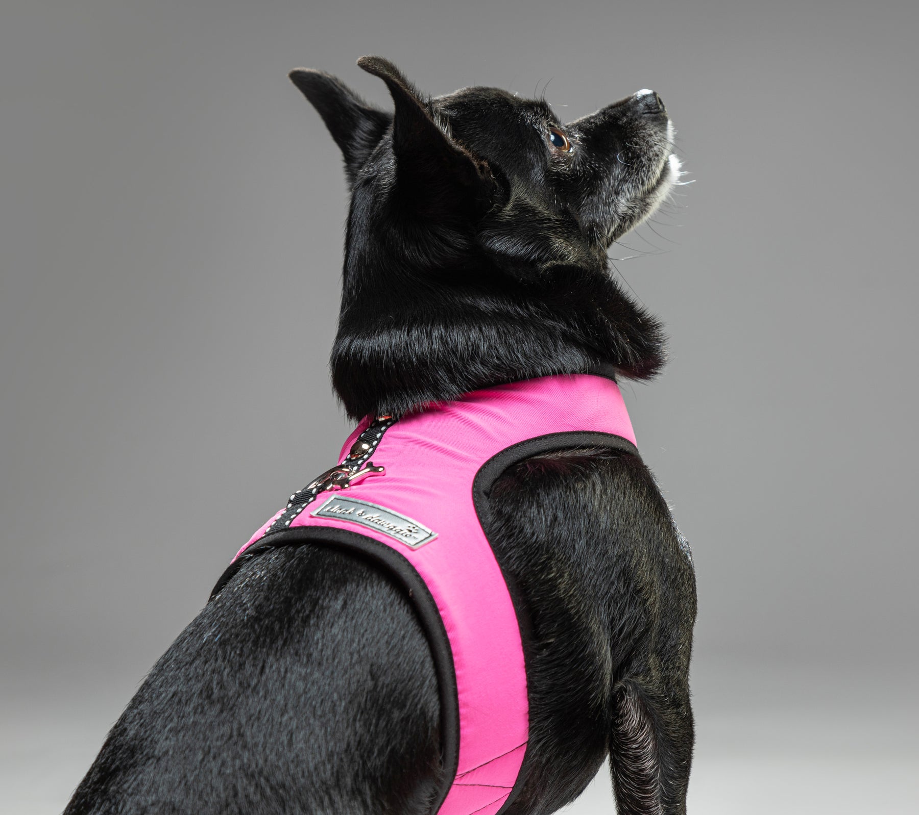 An adorable lightweight yet durable vest dog harness for extra small dogs up to 7/8 LBS. The Exclusive Anniversary Collection of solids and prints available with a coordinating leash, and accessorize with the matching ball caps and waste bags.