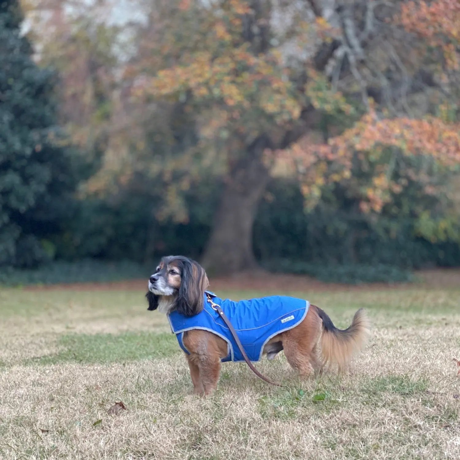 Precision Fit Dog Parka Royal - L Dog Walking in the woods