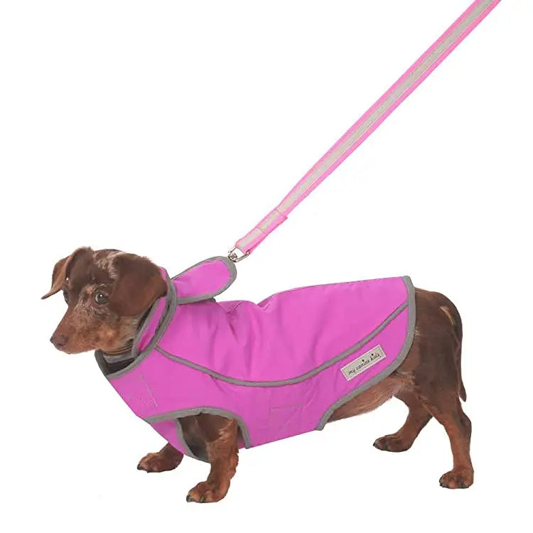 • WATERPROOF. WINDPROOF. Reflective Trim: Rain, wind, and snow. Day or night. Let's go! Premium winter dog jacket. A SUPPLEX nylon waterproof dog jacket will keep your doggie warm and dry. Provides excellent insulation and protection from the cold.